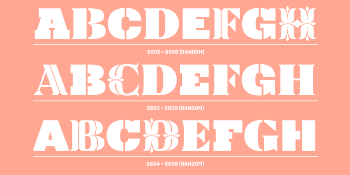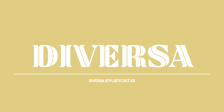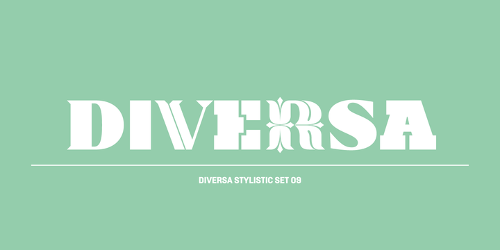Diversa is a typeface that takes a very different path from the most fonts, both in terms of appearance and usability. Diversa is a single typeface with 9 fonts within, containing 2760 glyphs, divide in 9 stylistic sets, but the main difference is that all the glyphs are kerned with each other, which means you can swap glyphs between stylistic sets and keep them properly kerned - unbracketed serifs, bracketed serifs, engraved, stencil, sans, slab, baroque, stencil sans, stencil slab and a stylistic set that mixes them all in a rotative feature. Diversa: Because uniformity sucks!